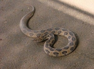 Viper alrussell dormant most of the time, but that would become very aggressive if their sense of danger. In this case it is the form of the Latin letter S and hiss is said to be the highest among all other snakes in the world. It prefers to live in open fields such as farms and therefore close to humans, and feed on lizards and rodents such as rats and mice.